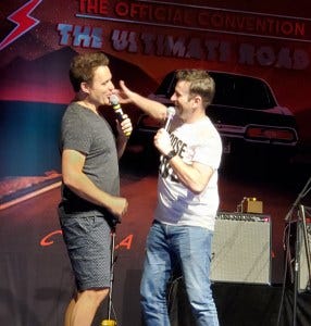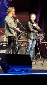 Rob Benedict played emcee as well as lead singer of Louden Swain all day, since Richard Speight was up in Vancouver directing Supernatural. He also shared the stage with Tim Omundson, who made his triumphant return to the cons with Vegas. Tim walked onstage himself and greeted the crowd, to a standing ovation.