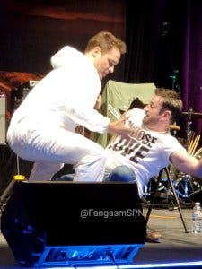 In this story, a fan who didn’t speak English instead tried to mime what she wanted them to do, which pretty much looked to them like they were pleasuring two dudes at once. When they balked (and blushed), she came back with something about “being tired” and they belatedly realized she actually wanted them to yawn.