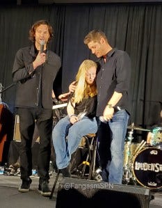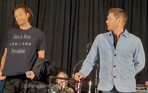 It was wonderful to have Jared back, and the roar when he and Jensen took the stage for the main panel was deafening. In a good way.