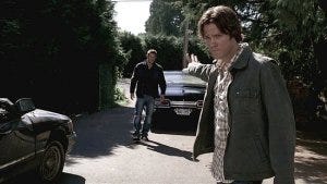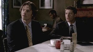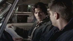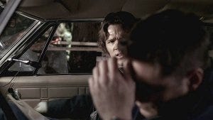 As the Winchesters head out, however, Dean has REO Speedwagon on in the car and starts singing along. (We all know Ackles can sing like a rockstar, but Dean isn’t quite as good – though at this point in the series, he’s not nearly as bad at it as they eventually tried to make him)