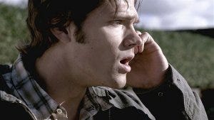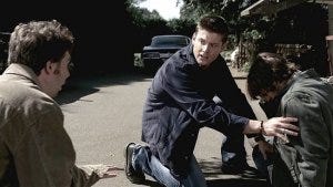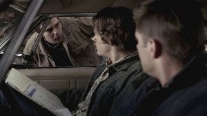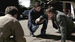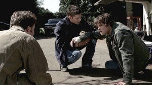 Sam tumbles out and Dean runs around to the passenger side and kneels beside a suffering Sam, holding him, and doing that thing the Winchesters will do for fifteen years whenever one of them is in trouble.
