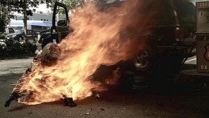 Sam: A woman, burning alive. A gas station. She’s going to kill herself. Gets triggered by a call on her cell.