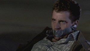 Andy duct tapes Weber’s mouth so he can’t give Tracy commands, then kicks him in a rage. Sam tries to get him to stop, but Andy is furious and terrified for Tracy. Weber, however, can control Tracy even without vocal commands, and she picks up a big stick and knocks Sam out.