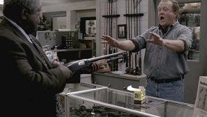 Manager: No no, you can’t load a gun on the premises, it’s illegal!