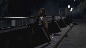 In reality, Sam’s premonition plays out with Weber driving onto a bridge with a distraught Tracy. He runs his hand up her thigh in the negligee she’s inexplicably wearing, saying he takes his ladies here and they like it.