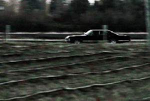 Dean gets in the car and Sam drives, music playing, into the night. Dean looks out the window.
