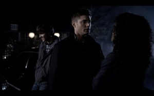 Sam has a strong reaction to finding out that Dean had a serious relationship while he was at Stanford, and probably a conflicted one. He’s happy to find out that his brother isn’t really all about just the one night stands like he claims, and he takes great joy in teasing his brother about his feelings for Cassie, but I think he’s also a little thrown by it. Dean changed, at least a little, while Sam was away; Sam wasn’t the only one evolving during those years they were apart. As hard as we see that be for Dean, this is a glimpse of how hard it is for Sam too. Dean was only about hunting and family, including Sam; this is Sam seeing a side of his brother he didn’t know, and realizing that Dean cared about someone else too, someone outside of their family.