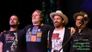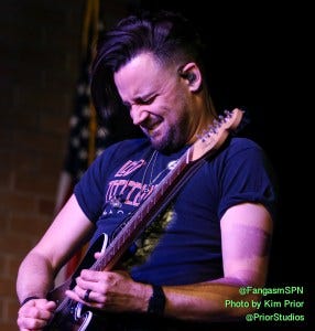 Con photographer Chris Schmelke joined the band for the next song, “Taxi Driver.” Mr. Schmelke played bass guitar. He brings his own brand of energy to the stage, and we are all there, fully there with him, soaking it in.