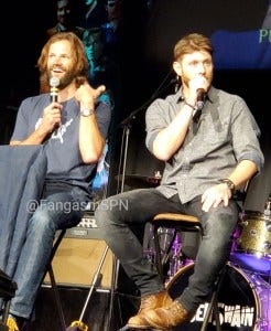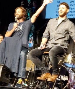 A fan asked about their Saturday routine when they’re at a con. Jared prefers a steakhouse dinner, which he says they often have the night before a con in whatever city they happen to be in. Jensen said that he works out in the morning, so he sleeps in as late as he can.