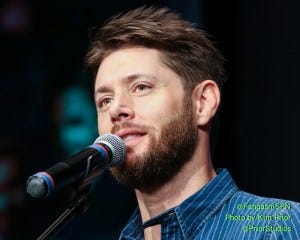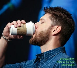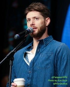 The gold panel kicked off the day at 10:30, which felt much too early to both of us. And to Jensen, who savored his customary cup of Starbucks in between answering fan questions.