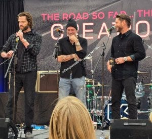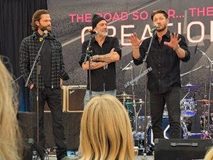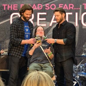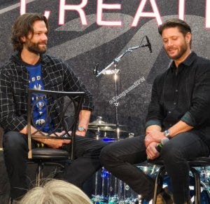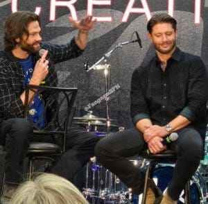 A fan told the three of them how much Supernatural had helped her get through some truly horrific life challenges. Jensen responded by noting the value of art – including all kinds of media – as a way of finding inspiration and strength. He gets it. They all do.
