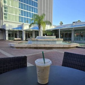I had another lovely dinner under the palm trees with friends, and a latte because everyone who knows me at all knows that there’s nothing like a decaf latte to put me in a good mood.