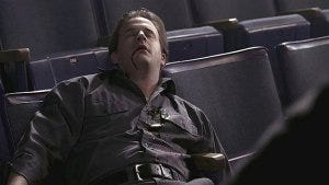 The next day, he lets Sam and Dean into the building again, saying he’s dragging ass a little, wild time last night.
