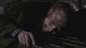 The Trickster enters, saying they’re a peace offering – that he knows what Sam and Dean do and that the victims got what was coming to them anyway, hoisted on their own petards. He suggests that the brothers treat themselves, giving him time to get away.