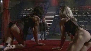 Suddenly, incongruously, he hears Barry White music, walking into an auditorium to “We’ve shared love and we’ve made love…can’t get enough of your love, baby” and two scantily clad women on a big round velvet bed.