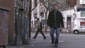 Sam finally goes to check out the trickster’s place, telling Dean to stay there, Dean agreeing with a reluctant and exasperated “Okay!”