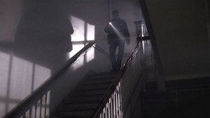 We don’t realize that this is all a very well acted ploy, as Dean waits a while and then says ‘ah screw this’ and goes inside, climbing the stairs with his flashlight and carrying a big wooden stake.