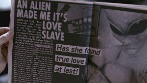 Sam suddenly says he forgot something in the truck and goes to get it, pulling out a lockpick and going through the lockers in the basement. He finds a copy of Weekly World News with the headline “Aliens Abduct Cheerleaders”.