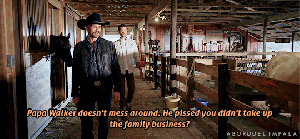 Clint makes Cordell take him through their barn and “show him all the pretty horses”, asking if his father was pissed he didn’t “take up the family business”. That was a shout out to Supernatural fans, which I always appreciate, but it was totally weird that Clint wanted a barn tour.