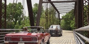 Improbably, they get far enough ahead that they’re able to hide under a bridge while the cops go screeching by above them. But no sooner do they get back on the road than Micki pulls up and confronts them. I’m not sure why she was part of the bank robbery chase or why she ditched the rest of them or figured out that Walker was part of it or what – but she’s there somehow.