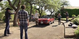 He dies and Cordell closes his eyes while Abeline sobs. I know not everyone who watches Walker is a Supernatural fan, and the show is very very different, but that scene was so reminiscent of the scene in the Supernatural finale when Dean (Jensen Ackles) dies similarly with his hand clasped in his brother Sam’s (Jared Padalecki).