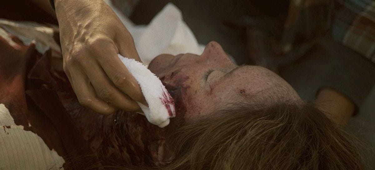 It contaminates Tracy’s reason for leaving hunting for Mary, as Tracy apologizes. John goes back to the barn alone for some reason, which is clearly a bad idea. The monster attacks him, then the ghost leaves the zombie monster and gets absorbed right into John as the zombie monster disappears.