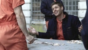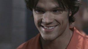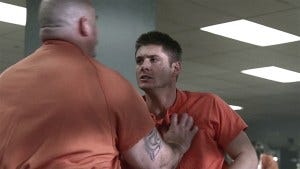 Even Dean Winchester can’t be totally in control in prison, though. He calls top bunk and his cellmate promptly puts all his things on the top bunk.