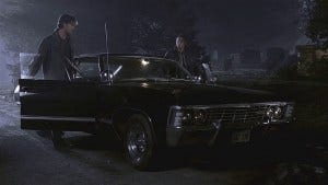 He runs his hand over her affectionately, and says he almost wishes he could see Henriksen’s face. Sam disagrees, reminding Dean that they’re not out of the woods yet.