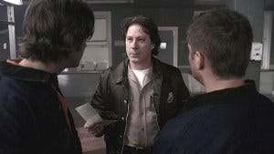 Later that night, Henriksen questions Deacon, skeptical that he let the Winchesters get the drop on him and desperate to know where they’re headed. He gets in Deacon’s face, demanding to know if they had any visitors, and Deacon has to tell them that yes, their lawyer visited.