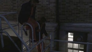 They walk right past a motion sensor, open up a glass case and take out an artifact or two – a dagger, an axe – then put them down as they hear a noise and the command ‘Freeze! Down on your knees now!’