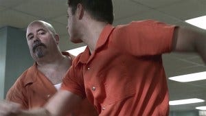 The brothers start to fight, and the guards and the warden grab them to stop what looks very convincingly like a real squabble.