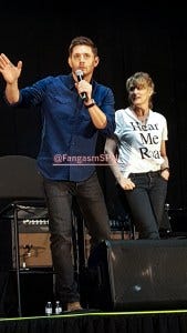 Eventually Jensen joined his ‘mom’ onstage to explain that JDM was still signing autographs, so his panel wasn’t going to happen, which was super disappointing. But also kind of impressive, because JDM was walking the auto line to be sure he didn’t disappoint anyone.