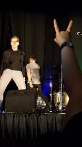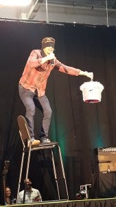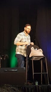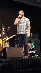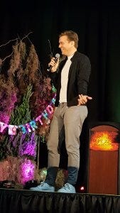 Saturday came early though, back to the vendors room by 9 am. A few hours later, Jason and Emily kicked off Day 2. It was Jason’s actual birthday, so Emily strung up a Happy Birthday sign on the dead trees that always grace the stage. Best use of the dead trees ever!