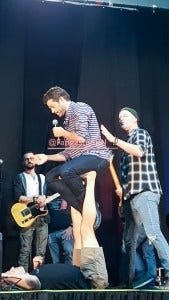 Sam Smith carried on until a surprise Misha Collins took the stage, everyone stepping up to try to fill in for Jeffrey.