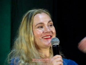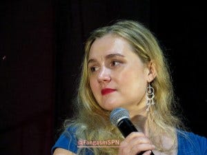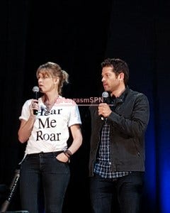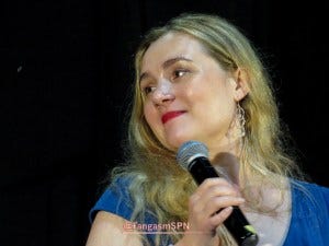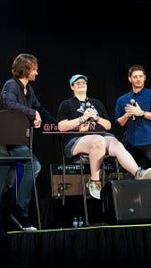 She also had lots of kudos for Misha Collins, both his acting and just who he is as a person. Always prepared, and just plain awesome (though he smells like peanut butter and sardine crackers…)