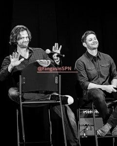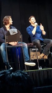 I don’t recall the context, but at one point Jared was telling a story of meeting a fan “in the wild” and Jensen started doing a voice over, “The Padalecki in the wild…”