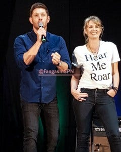 Alaina also told the hysterical story of walking down the hallway at a convention and seeing all these girls sobbing and comforting each other. She wondered what terrible thing had happened until she realized that Jensen had been walking right in front of her.