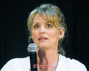 Sunday afternoon was messier than the cons usually are. Samantha Smith came onstage to do what was supposed to be a short panel, and then she would be joined by JDM. Which would be pretty cool. I mean, Mama and Papa Winchester! But instead Samantha just ended up doing a long panel by herself, while JDM tried frantically to sign all the autographs that had been purchased while also knowing he had a plane to catch imminently.
