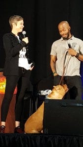 At the end of their panel, we were introduced to some of the participants in New Leash USA who have been helped by the charity campaign that Kim and Briana and Stands recently ran. Both former inmate Kevin and his beautiful dog Rosie were inspiring, along with another former inmate and his dog, who was a bit shy. And that is how to change your story – with the help of fandom.