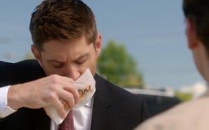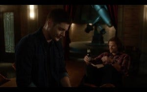 Dean: (looking shocked that Sam actually went there, because it’s clear he’s no longer play acting) Really? No I’m good — with death, closure, the whole friggen bottle of Jack…