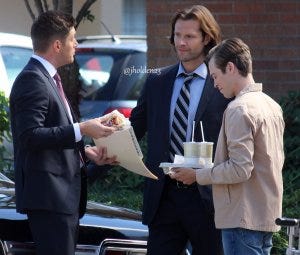 Jack also helpfully fetches the boys’ lunch, which gave Jensen Ackles a chance to mess with him as they filmed the hotdog eating scene. How Alex and Jared didn’t break repeatedly is a mystery to me – actually they probably did. Repeatedly. In fact, the fans who were watching filming that day posted about watching Alex and Jared lose it as Jensen goaded them with hot dog falling out of his mouth. Some of which actually made it into the scene!