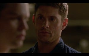The real evolution comes after Buddy the bad shifter almost kills Dean and Jack – and then almost kills Sam. First we get a moment with Shifter!Dean, which gives Jensen Ackles a chance to play bad guy for a minute, and it’s probably a lot hotter than it should be. Like a glimpse of Demon!Dean that I didn’t get anywhere near enough of.