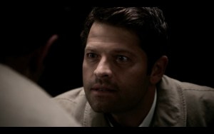 Supernatural has played with characters confronting different versions of themselves before – Dean confronting future!Dean in ‘The End’ memorably comes to mind – so Cas confronting Entity!Cas isn’t unprecedented. I was caught off guard, though, by the way Misha Collins plays the other version. Because he’s very very different! I wasn’t sure whether to laugh at Entity!Cas or be chilled by him, or maybe a little bit of both. He seemed to have a little bit of Alastair and a little bit of Zachariah and possibly a little bit of Balthazar in him too. He almost seems friendly, or at least amusing, until he punches you in the stomach. Again, ouch.