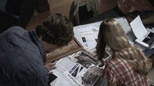 Dean proves himself just as smooth as Jo, though, going right along when the landlord asked how they got into the apartment with a quick and casual, “it was open” and then Jo immediately distracts him so he can’t inquire any more. Poor landlord guy wasn’t any match for three smart hunters. Jo and Dean are still snarking at each other, more like siblings every second (which is where they ended up going with the two characters).