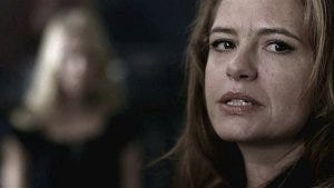 We can see that’s true too, as Samantha Ferris gives a great performance as the in-control tightly-wrapped Ellen comes apart, covering her mouth like she wants to stop herself from telling her daughter the truth but knows it’s time to.