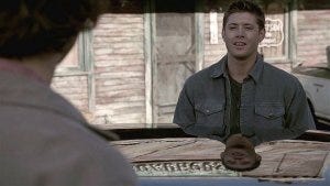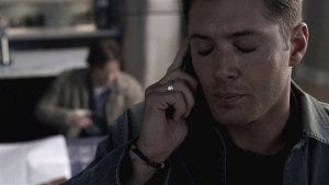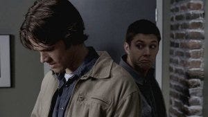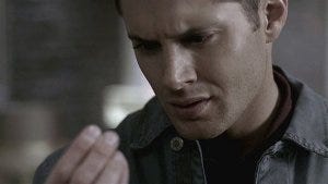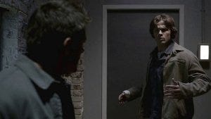 As he turns around, he runs into Sam. Literally. When Sam asks what happened, Dean’s guilt pours out all over the place.
