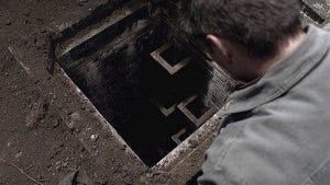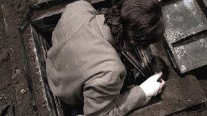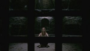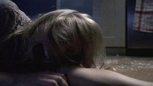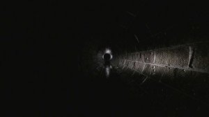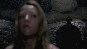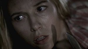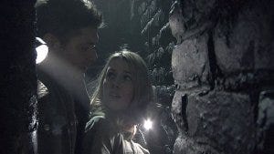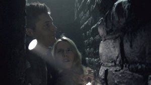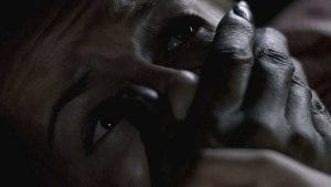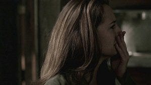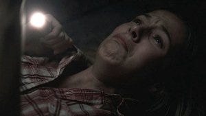 In the sewer, Jo wakes up in the dark, using her flashlight to look around. It’s an incredibly scary, claustrophobic scene as the flashlight lets her see that she’s not the first person who’s been trapped there – the ceiling above her, just barely above her head, has nail scratches in it.