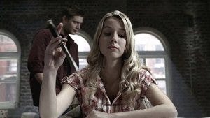 Dean and Sam pry Jo out and Sam reassures Teresa that they’re going to get her out too. But the brothers also admit that the only plan they have at this point is the one Dean didn’t like – using Jo as bait. She steels herself and agrees.