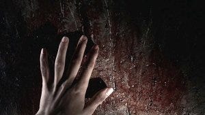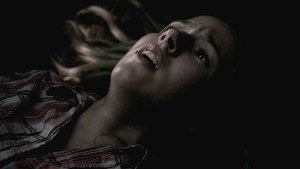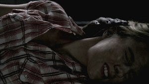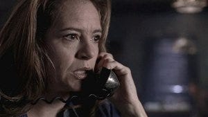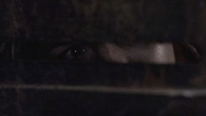 Then they hear the spirit approaching, and both fall silent. In a truly frightening and horrifying scene, we can only see what Jo sees, through the narrow slat in the dark. Suddenly hands come in and grab at Teresa as she screams and it rips off some of her hair.