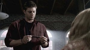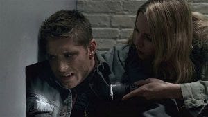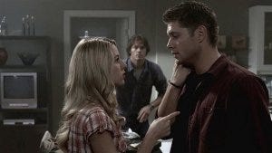 (All the attempts at sexual tension between Dean and Jo ring really off to me at this point because the show took them down more of a little sister type road eventually, so Jo seems younger than she is supposed to be here.)